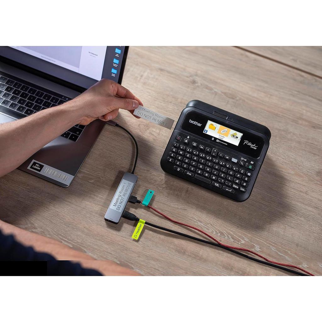 Transform the workplace with Brother’s PT-D610BT Professional label printer. From large office spaces to retail and wider business environments, PT-D610BT label printer can print on durable TZe laminated labels up to 24mm in width and up to 30mm per second fast print speed. Come with a built-in QWERTY keyboard with a large graphical LCD and a print preview, PT-D610BT label printer is designed for ease of use and fast typing with optimal desktop handling. PT-D610BT label printer is perfect for standalone use. It can also connect to a computer via a USB connection or via a Bluetooth connection with a smartphone to print labels. PT-D610BT label printer can make life straightforward from organizing files and assets for the workplace. This label printer also allows the easy creation of visitor’s name badges and office signage labels, resulting in an organized and comfortable working environment for all employees, resulting in maximum productivity in the office.