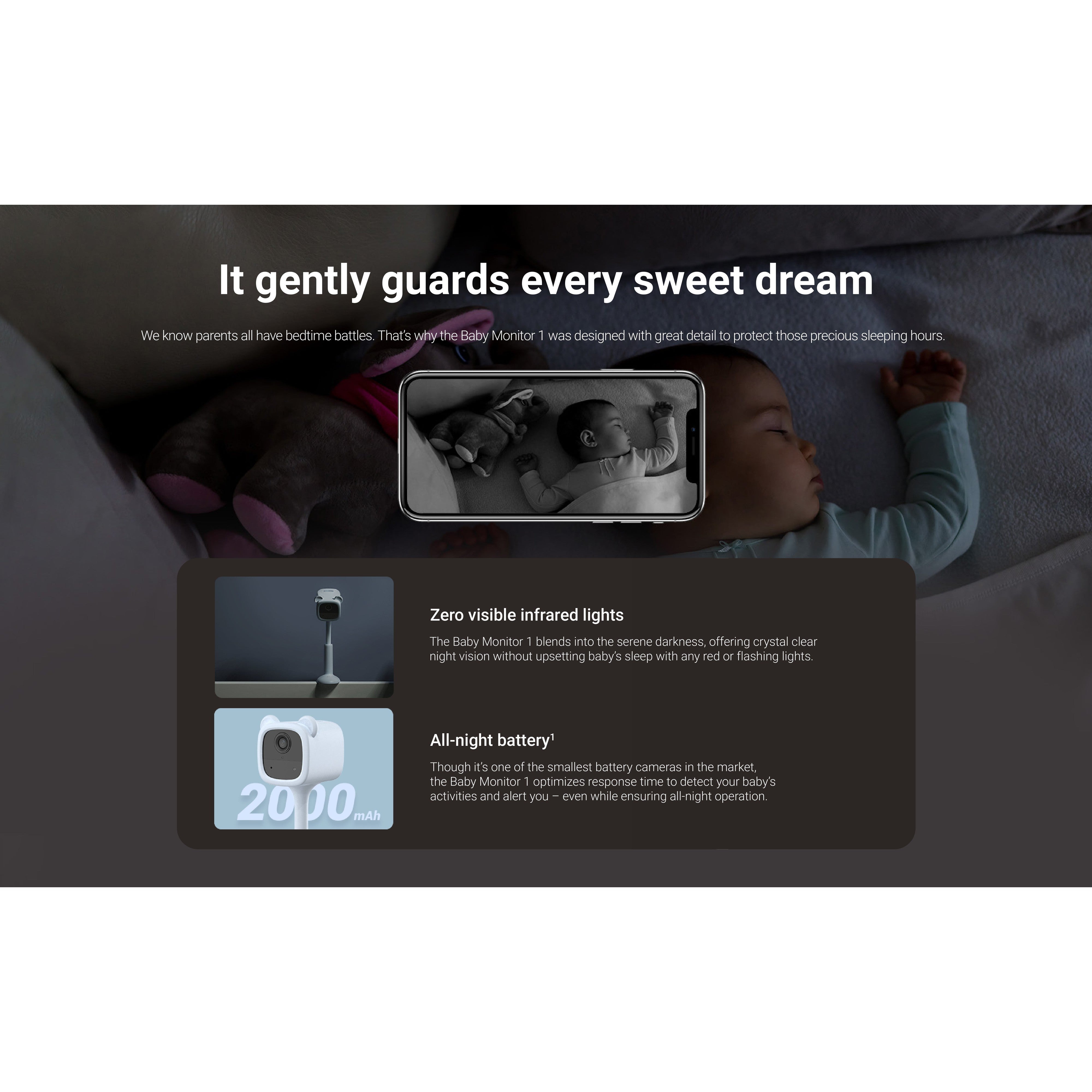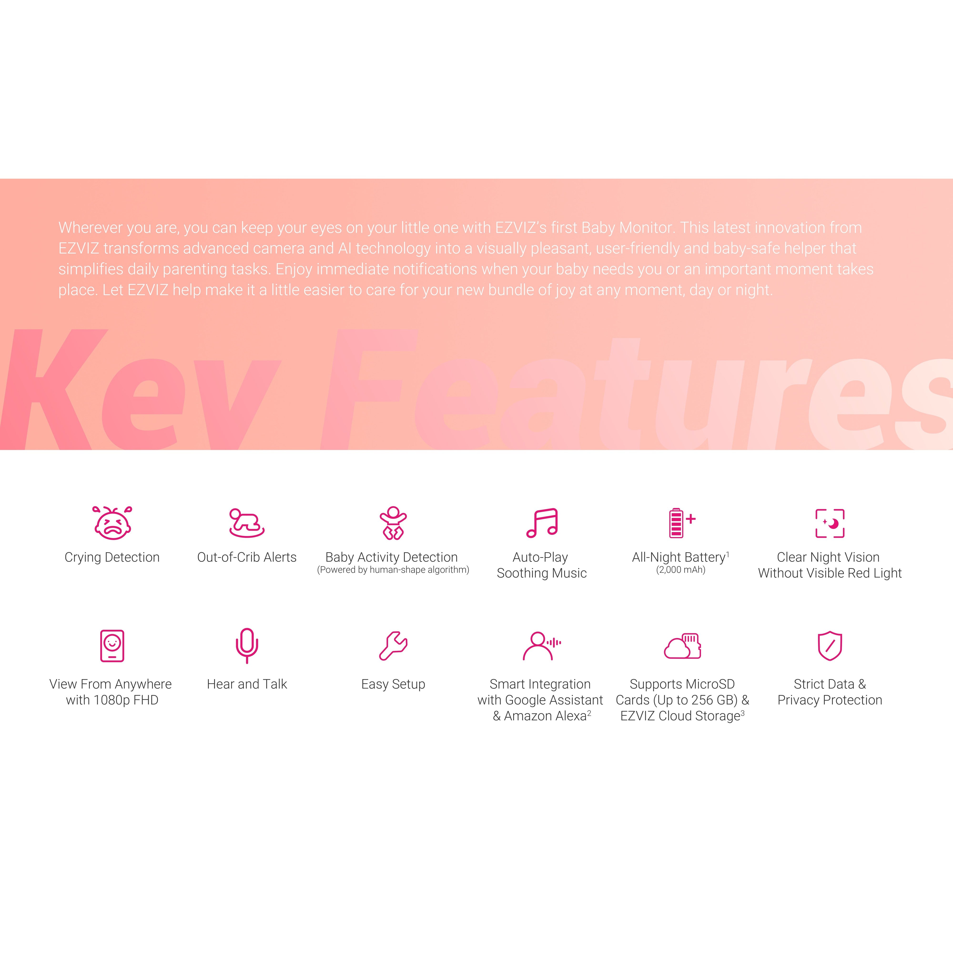 | Detection | Crying Detection, Out-of-Crib (Baby Leaving), Detection Baby Activity (Smart Human) Detection |