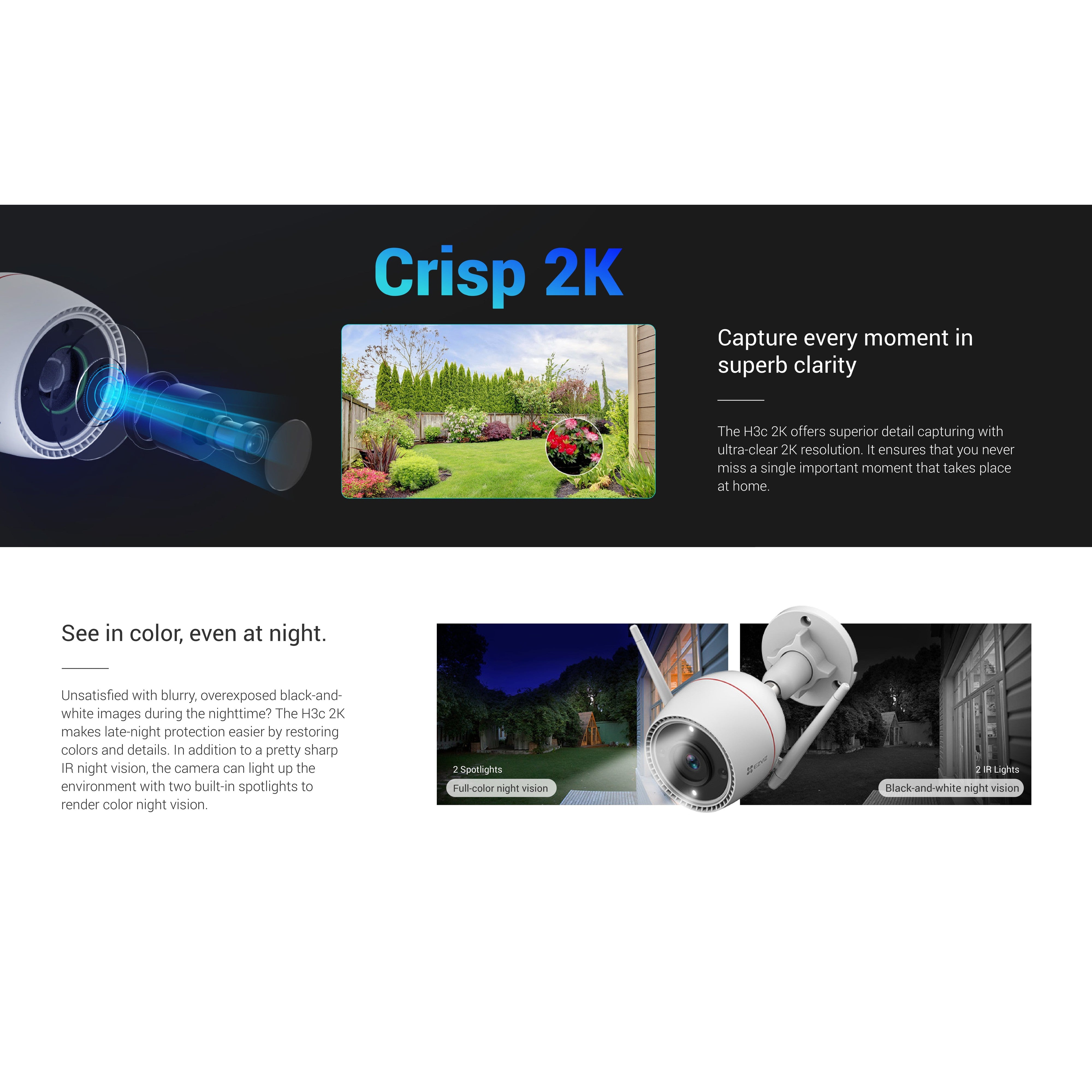 The H3c 2K offers superior detail capturing with ultra-clear 2K resolution. It ensures that you never miss a single important moment that takes place at home.