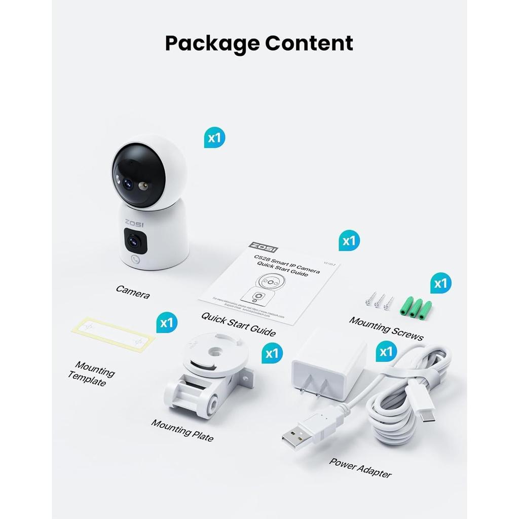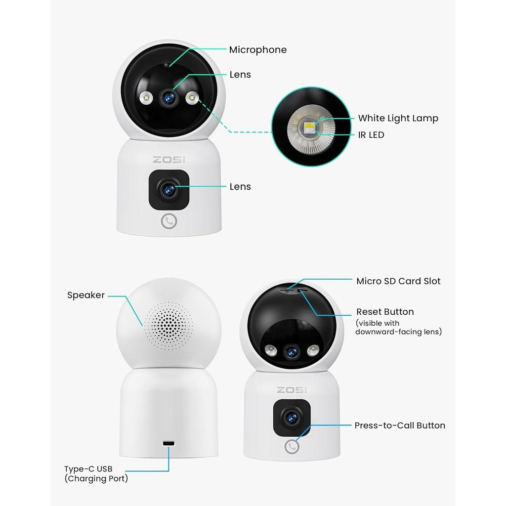 The ZOSI Indoor PT Camera with Dual Lens 2MP+2MP offers comprehensive surveillance with its dual 2-megapixel lenses, providing a wider field of view and enhanced image clarity. Its pan-tilt functionality allows precise control over the camera angle, ensuring thorough coverage of indoor spaces. Designed for expert users, this camera delivers reliable performance for monitoring homes or offices, combining advanced optics with flexible positioning to capture detailed footage from multiple perspectives. Ideal for those seeking a robust and versatile indoor security solution.