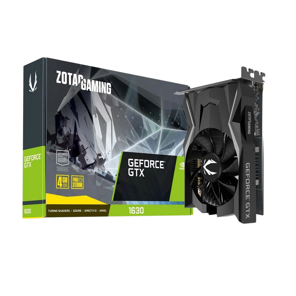 The new ZOTAC GAMING GeForce® GTX 1630 graphics card based on the award-winning NVIDIA Turing™ architecture is packed with fast GDDR6 memory and power efficiency in a super compact design. It offers powerful graphics performance for anyone seeking to step up in gaming or creativity.