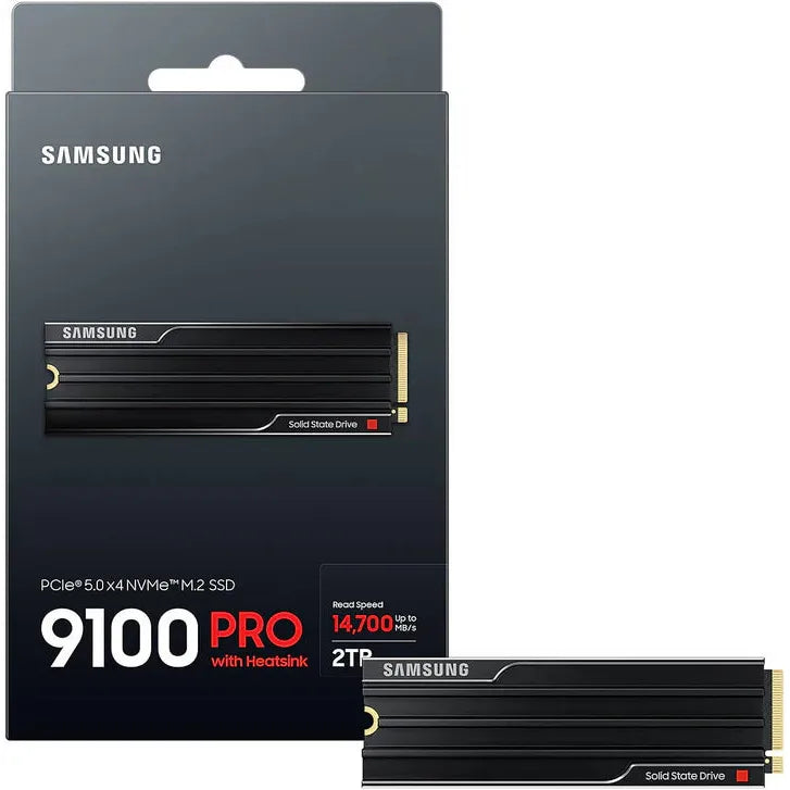 Experience next-generation storage performance with the 2TB Samsung 9100 Pro Gen5 NVMe drive, engineered for demanding applications and high-speed data transfer. This cutting-edge SSD delivers sequential read speeds up to 14,700MB/s, making it ideal for content creators, and professionals handling large files. The integrated heatsink efficiently manages thermal output, maintaining optimal performance during sustained workloads while preventing throttling. With 2TB of capacity, you gain ample space for applications, and media libraries without compromising speed. The Gen5 interface ensures maximum bandwidth utilization, future-proofing your system for years to come. Whether you're rendering videos, transferring massive datasets, or building a high-performance workstation, this Samsung drive delivers the reliability and speed professionals demand.