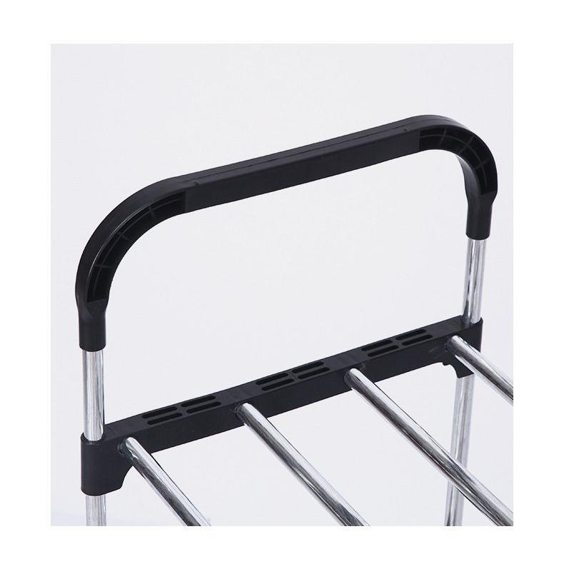 The 6 Tier Steel Shoe Rack with Handle offers a robust and practical storage solution for organizing your footwear efficiently. Crafted from durable steel, this rack provides five spacious tiers to accommodate multiple pairs of shoes, keeping them neatly arranged and easily accessible. Its sturdy handle enhances portability, allowing you to move the rack effortlessly as needed. Ideal for entryways, closets, or bedrooms, this shoe rack combines strength and convenience, helping maintain a clutter-free environment while protecting your shoes from damage. Its sleek design complements various interior styles, making it a smart addition to any home.