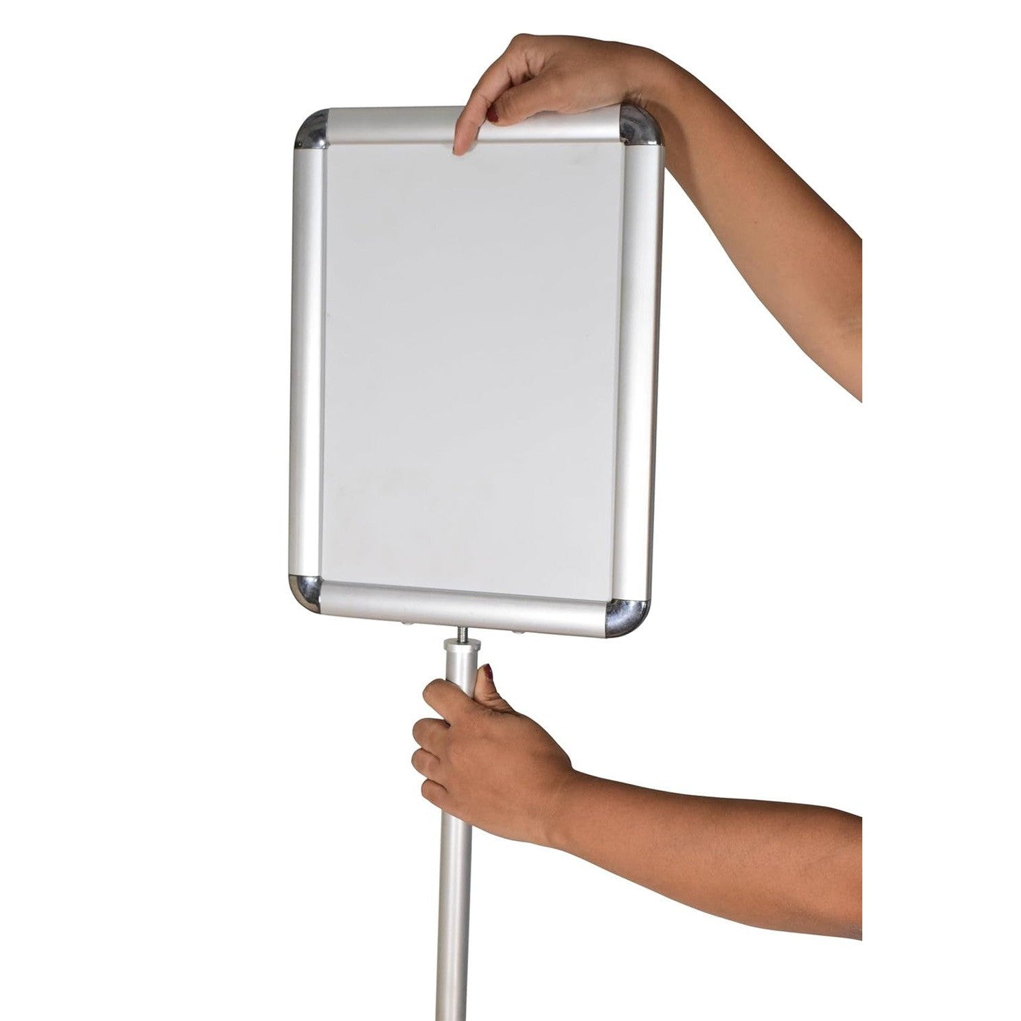 Constructed From Three Sturdy Aluminum Poles, The Infomate Stand Ensures Stability And Longevity. These Pipes Seamlessly Connect To A Sleek Stainless Steel Base With A Suitable Weight Attached Below, Providing A Secure Foundation For Your Signage.