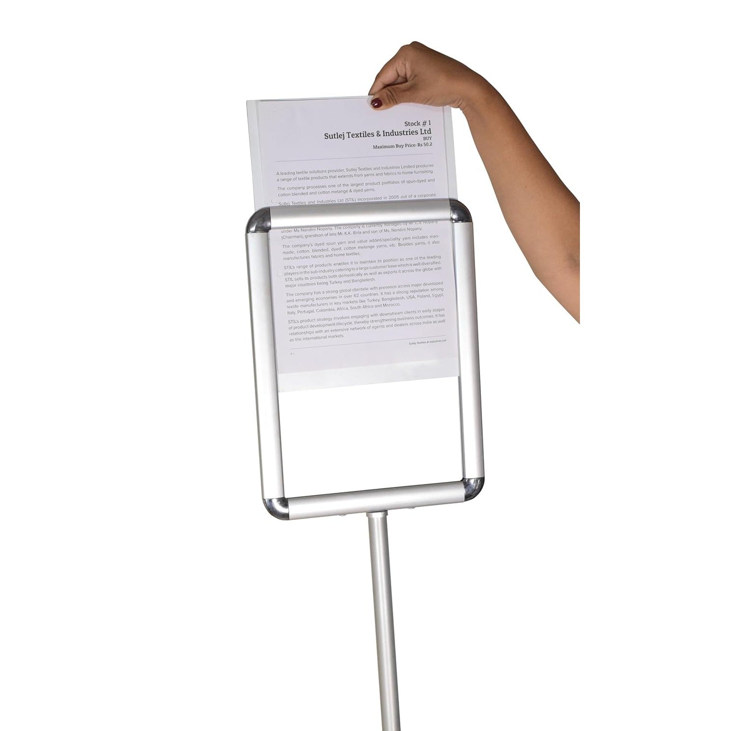 • Constructed From Three Sturdy Aluminium Poles, The Infomate Stand Ensures Stability And Longevity. These Pipes Seamlessly Connect To A Sleek Stainless Steel Base With A Suitable Weight Attached Below, Providing A Secure Foundation For Your Signage.