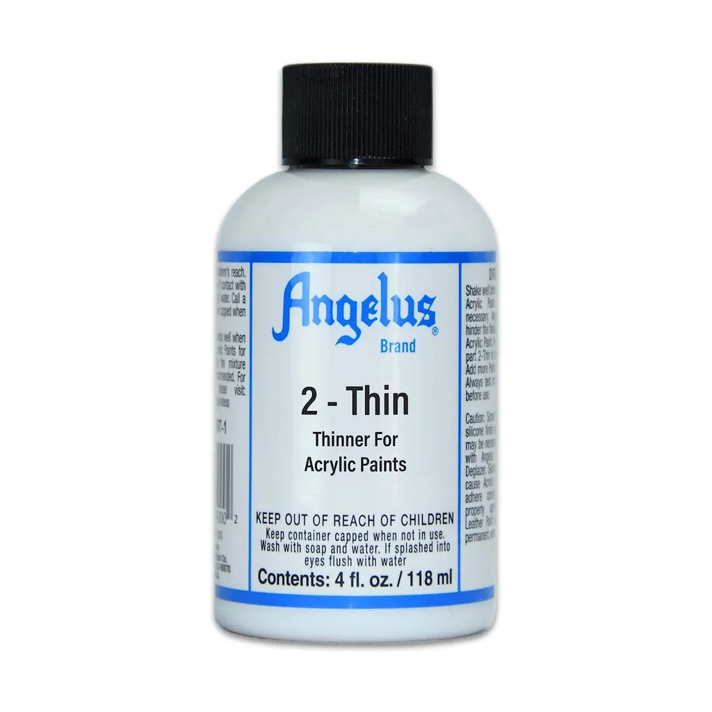 Angelus 2 Thin No Color (118ml) is a specialized acrylic thinner designed to adjust the consistency of Angelus paints without altering their color or finish.