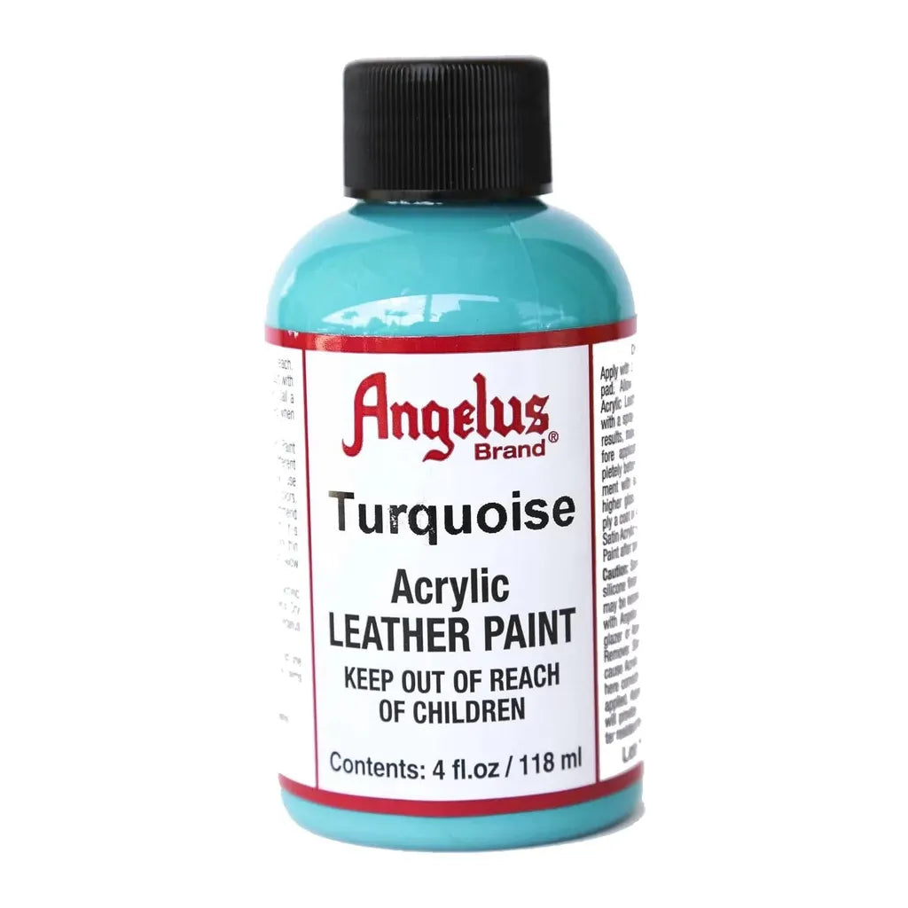 Angelus Acrylic Turquoise Paint in a 118ml bottle delivers a vibrant, richly pigmented turquoise color, ideal for professional artists and crafting enthusiasts.