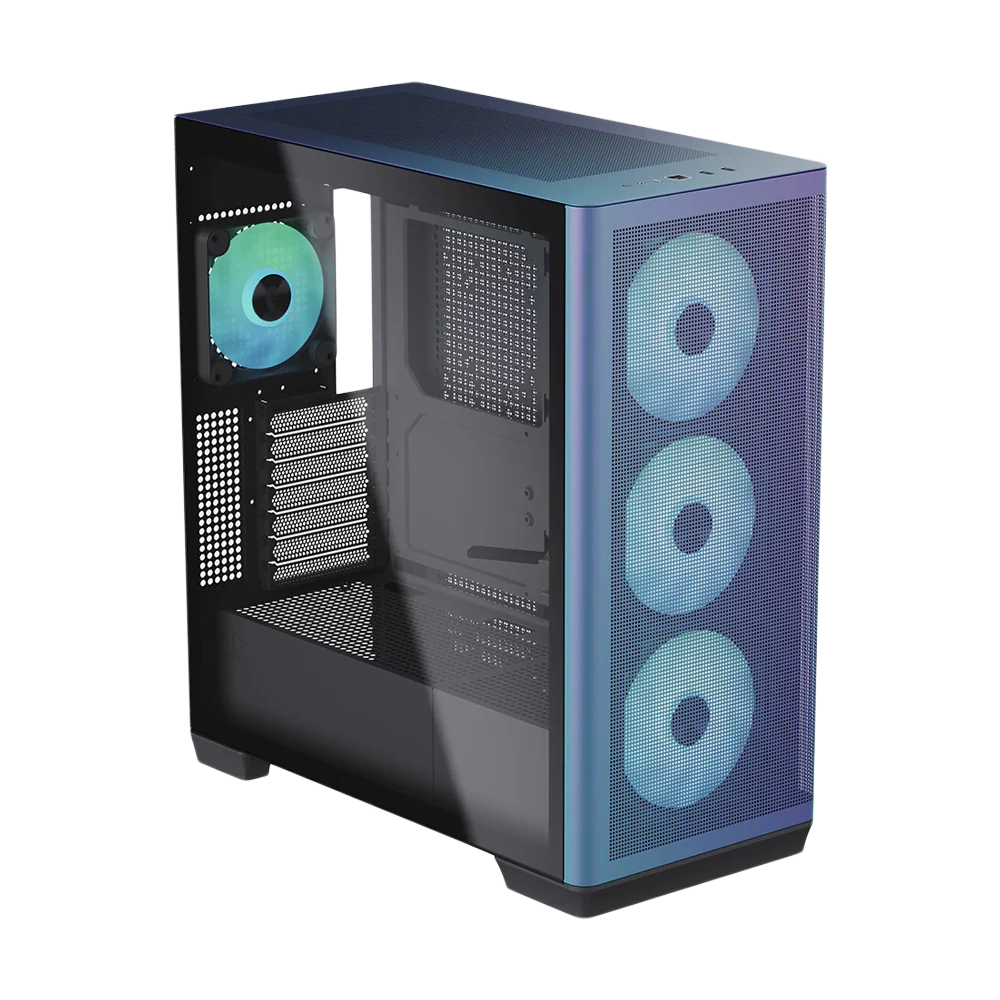The APNX C1-R Chroma Flair is a mid-tower PC case engineered for builders seeking optimal airflow, aesthetic customization, and practical cable management. Pre-installed with four ARGB fans, this case delivers superior cooling performance while enabling dynamic RGB lighting synchronization across your entire build. The mid-tower form factor strikes an ideal balance between component compatibility and desktop footprint, accommodating standard ATX motherboards, multiple storage drives, and high-end graphics cards without excessive bulk. The ARGB fan ecosystem allows seamless integration with compatible motherboards and lighting controllers, enabling synchronized color schemes and effects that transform your system into a visual centerpiece.