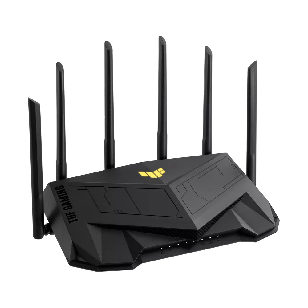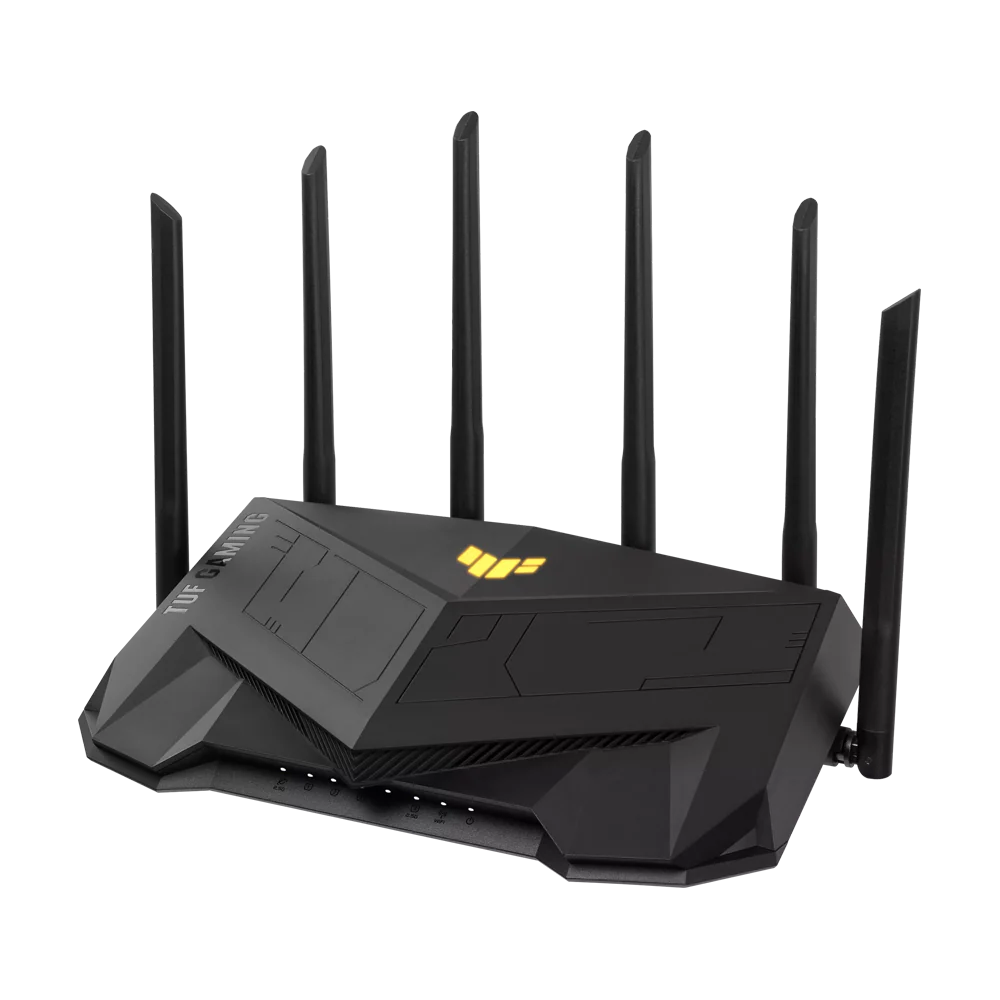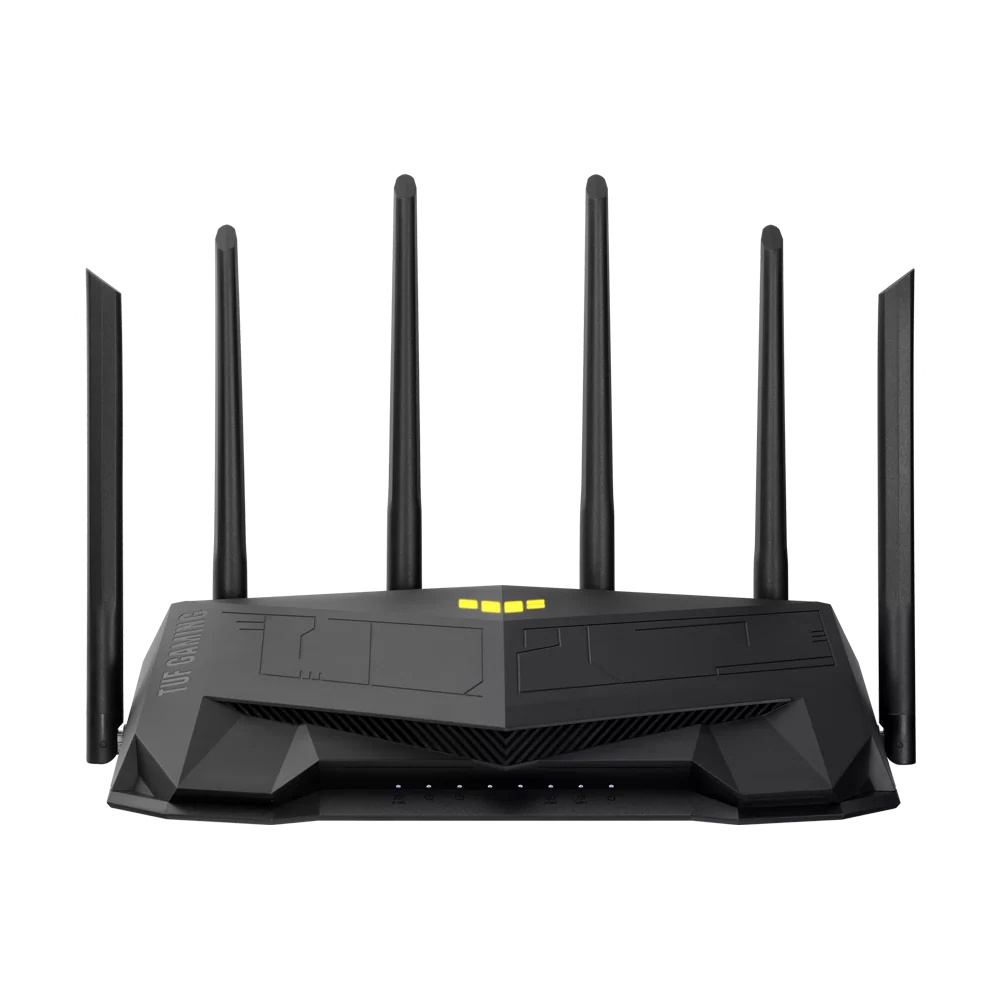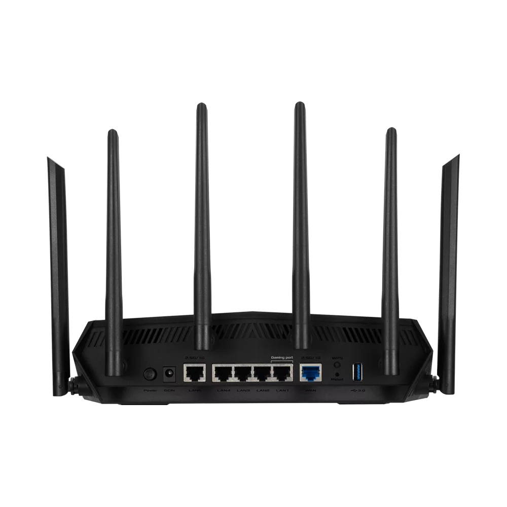 The ASUS TUF Gaming AX6000 is a powerful Dual-Band WiFi 6 (AX6000) gaming router designed for ultra-fast speed, stable connectivity, and high efficiency in device-dense environments. With dual 2.5G ports, a dedicated gaming port, AiMesh support, and military-grade durability, it delivers lag-free gaming and smooth multi-device performance.
