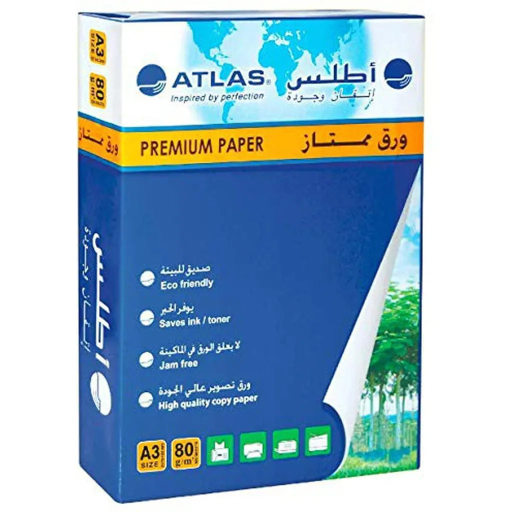 Expertly create high-quality documents with Atlas Photocopy Paper A3 80Gsm Ream. Enjoy smooth printing and sharp images with its good runnability and excellent smoothness. Its bright appearance enhances copier performance and ensures longer storage for important documents. Trust Atlas for superior results every time.