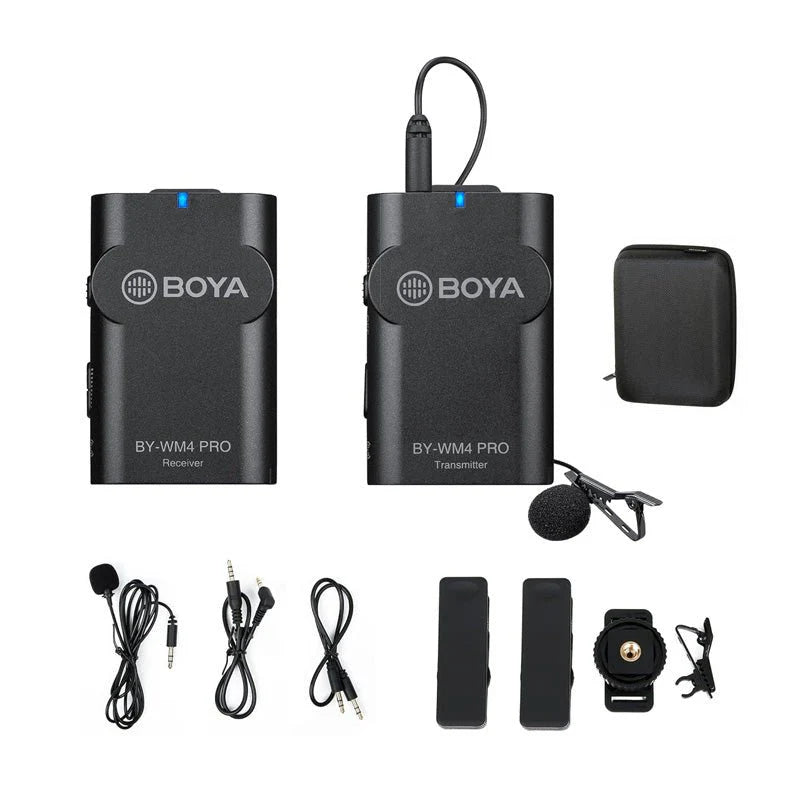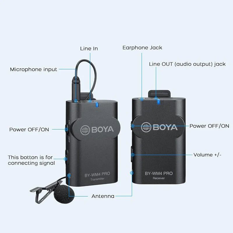 Designed for videographers on a limited budget and video hobbyists, BOYA BY-WM4 PRO system is a new generation 2.4 GHz wireless microphone, dual-Channel for capturing audio with dual subjects to your smartphones, tablets, DSLR cameras, consumer camcorders, PCs etc.