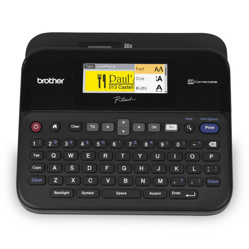 The P-touch PT-D600 is a compact, PC-connectable label printer with a color backlit graphic display and a large, QWERTY-style keyboard that help make it easy to create professional labels for the office.