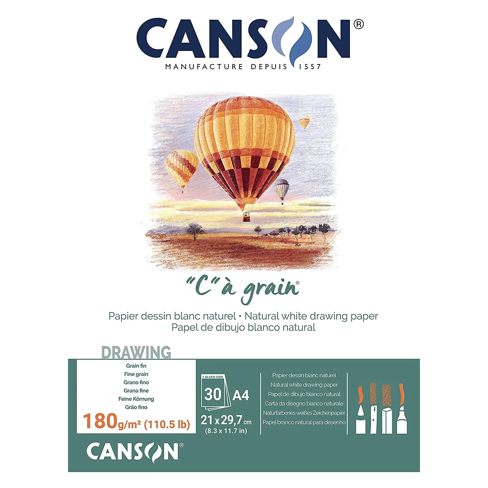 Increase quantity for Canson "C" A Grain Drawing Paper Fine Grain, A4 Pad Set Of 2Pc