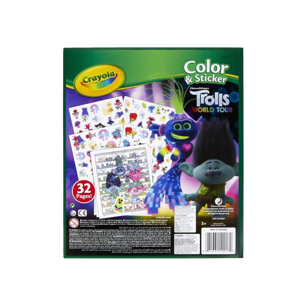 Crayola Trolls World Tour Color and Sticker Activity Book offers an engaging creative experience for fans of Trolls 2. This coloring book features vibrant illustrations inspired by the movie, encouraging artistic expression and fine motor skills development. Included stickers add an interactive element, allowing children to personalize their artwork and bring scenes to life. Designed with high-quality paper, it supports various coloring tools such as crayons, markers, and colored pencils. Perfect for hours of imaginative play, this activity book combines fun and creativity, making it an excellent choice for young Trolls enthusiasts.