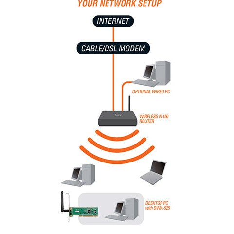 THE DWA-525 EASILY CONNECTS YOUR DESKTOP COMPUTER WITH AN AVAILABLE PCI PORT TO YOUR WIRELESS NETWORK FOR INTERNET ACCESS AND FILE SHARING. WITH WIRELESS N PERFORMANCE, THE D-LINK WIRELESS N 150 DESKTOP PCI ADAPTER IS THE BEST CHOICE FOR EASILY ADDING OR UPGRADING WIRELESS CONNECTIVITY TO YOUR DESKTOP COMPUTER.