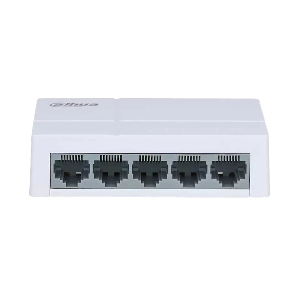 The Dahua PFS3005-5ET-L 5-Port Unmanaged Ethernet Switch is designed to offer fast, reliable network connectivity for small businesses, homes, and remote applications. With five adaptive 10/100 Mbps ports, this switch ensures seamless data transmission and easy network expansion. It features a lightweight, compact design with built-in chips that enhance performance and durability. The switch operates efficiently in various environments, with a wide range of operating temperatures and humidity levels. Ideal for desktop mounting, the device also includes lightning and static protection for enhanced reliability in harsh conditions.
