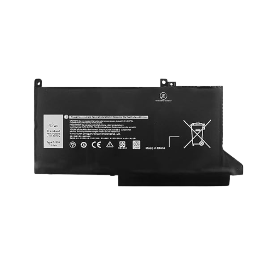 A reliable replacement battery for Dell laptops using the DJ1J0 model, offering 11.4 V power and around 42 Wh capacity for dependable backup and stable everyday performance. DJ1J0 Dell battery is designed for the Dell Latitude Series laptops such as the Latitude 12 (7280/7480), Latitude 13 (7380/7390), and Latitude 14 (7480/7490). It delivers 11.4 V and approximately 42 Wh (3-cell Li-ion) capacity. Built with premium lithium-ion cells and integrated protection circuitry to guard against over-charge, short-circuit, and overheating.