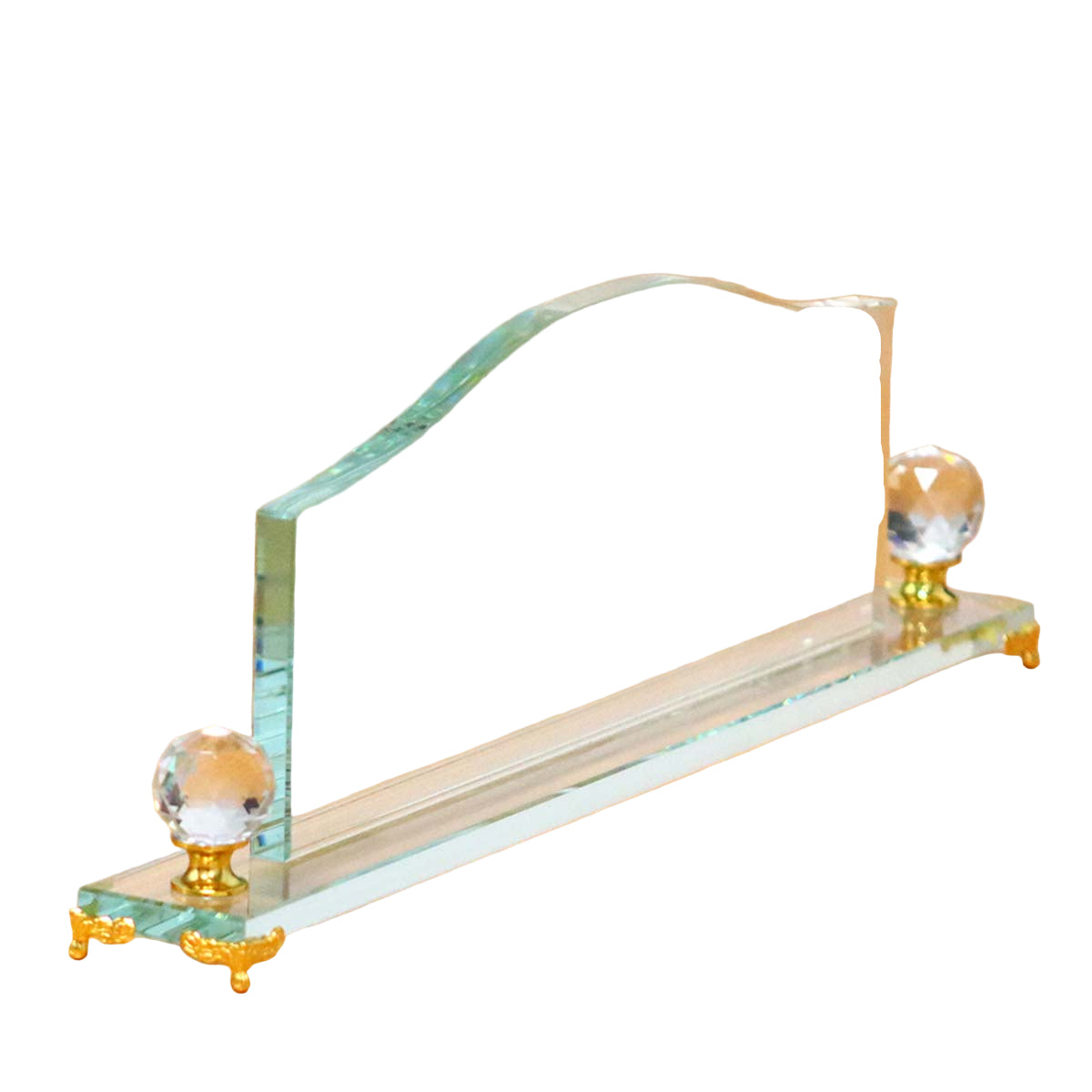 The Desk Name Stand Glass combines sleek design with sturdy functionality, crafted to enhance professional spaces.