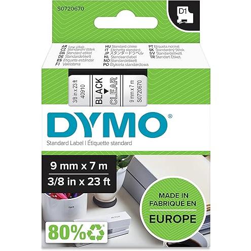 DYMO Authentic D1 Labels deliver professional-grade labeling solutions with precision and durability. These 9mm x 7m rolls feature crisp black print on transparent clear tape, ensuring optimal readability while seamlessly blending with any surface. The self-adhesive backing provides strong adherence to various materials including plastic, paper, metal, and glass. Engineered specifically for DYMO Label Manager and Label Writer Duo machines, these labels resist fading, peeling, and moisture damage, making them ideal for both indoor and outdoor organizational needs. Perfect for office filing systems, equipment identification, retail pricing, or home organization projects where clarity and longevity are essential.