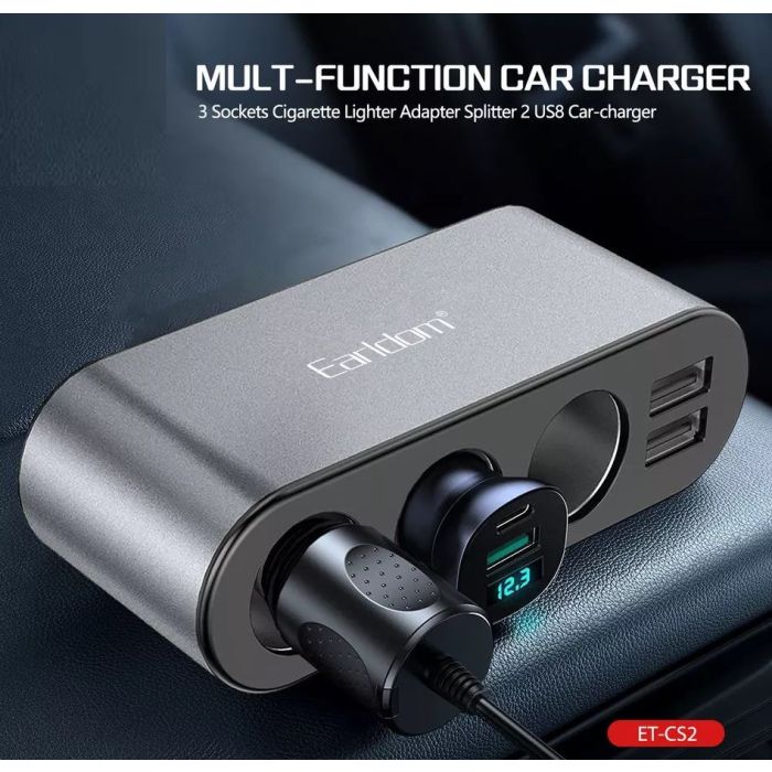 Enhance your driving experience with this premium car charger, offering fast charging and reliable performance. The Earldom 120W Dual USB Car Charger combines powerful charging capability with practical versatility for modern drivers. This 4-in-1 socket solution delivers 120W of output through dual USB ports, enabling simultaneous charging of multiple devices at optimal speeds. The integrated car lighter socket maintains traditional functionality while the sleek black design complements any vehicle interior. Built with intelligent power management, it automatically adjusts output to match your device requirements, protecting against overcharging and overheating. Whether you're powering smartphones, tablets, or other USB-enabled devices during daily commutes or long road trips, this charger ensures your essential gadgets remain charged and ready. The compact form factor fits seamlessly into standard 12V car sockets without obstructing dashboard visibility or controls.