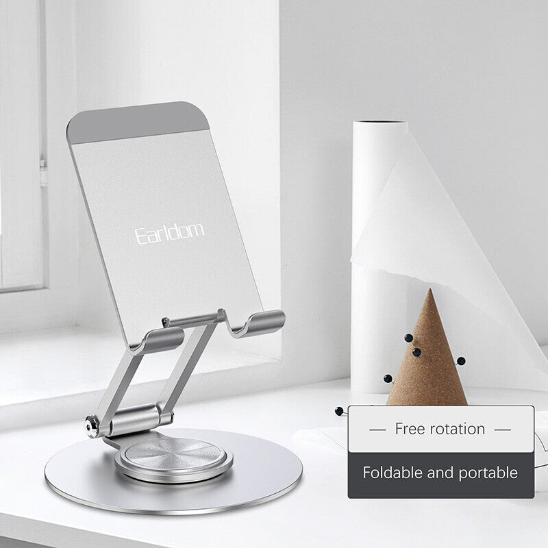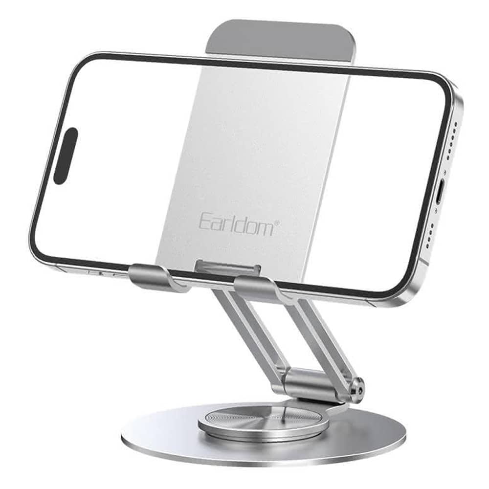 The Earldom ET-EH227 Desktop Stand combines elegance and functionality in a metal foldable design that’s perfect for both phones and tablets. With 360° rotation and adjustable viewing angles, it ensures ergonomic comfort for work, video calls, or entertainment. Its sturdy aluminum construction provides stability and a premium look.