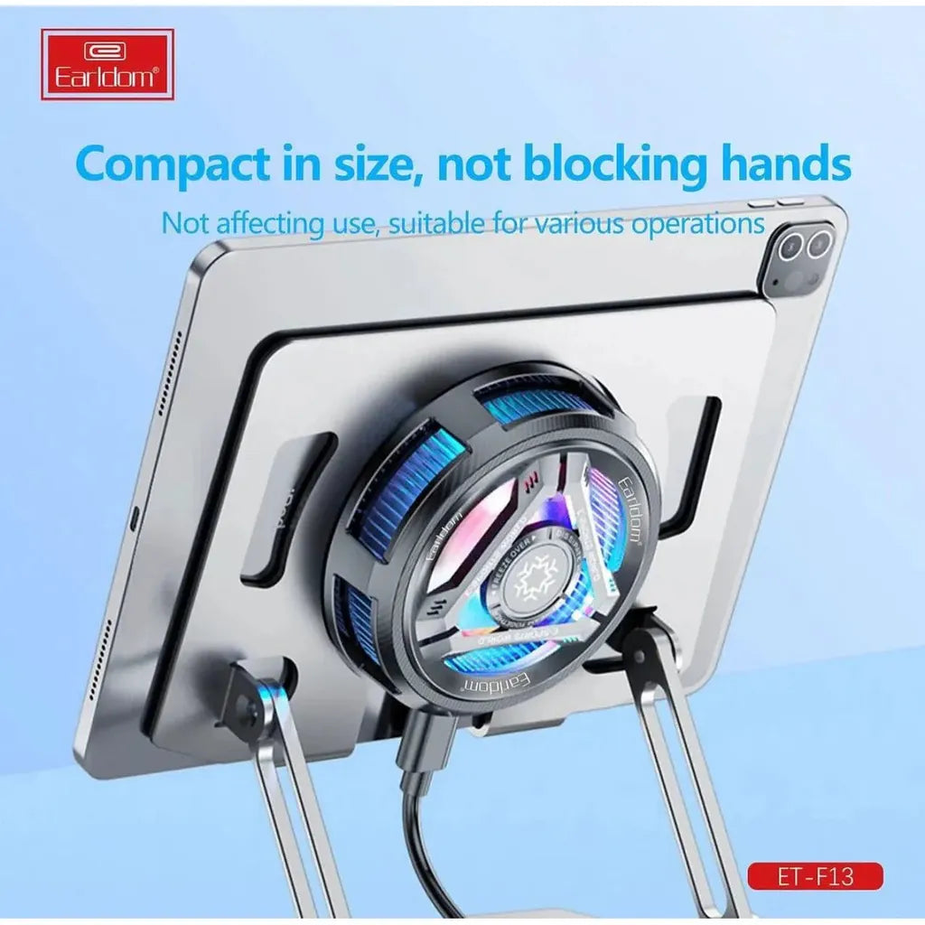 The Earldom F13 RGB Tablet Cooler Fan is the perfect solution for preventing overheating during intensive use. Equipped with vibrant RGB lighting and an efficient cooling system, it ensures your tablet stays cool and performs optimally during gaming, streaming, or extended work sessions.