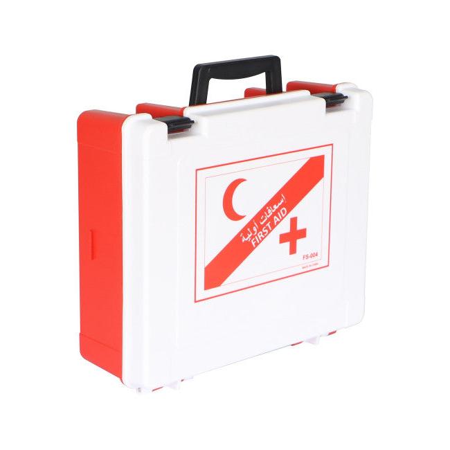 This team first aid kit is able to serves up to 25 people. The kit includes essential items for controlling bleeding, cleaning and covering small wounds, removing ticks and other embedded objects. This is the perfect kit to keep in vehicles, business companies, factories, sporting clubs, tourist villages, workshop, building yards, labs, shops, restaurants, shopping centers, and etc. FS-004 Contents: Total 105 pcs 01 First Aid Dressing 1 pc 02 Rescue Blanket 1 pc 03 Elastic Bandage 1 roll 04 Conforming Bandage 2 rolls 05 Tweezers 1 pair 06 Adhesive Plasters 50 pcs 07 CPR Face Shield 1 pc 08 Triangular Bandage 1 pc 09 Strap Tourniquets 1 pc 10 Non Woven Sponge 10 pcs 11 Instant Cold Pack 1 pc 12 Non- A dherent Pad 3 pcs 13 Gauze Swab 5 pcs 14 Scissors 1 Pair 15 Safety Glove 4 pairs 16 Tape 17 Cleansing Wipe 5 pcs 18 Soap Wipe 5 pcs 19 Safety Pins 10 pcs 20 Team Box. PP ( Size:26.5x23x9cm ) 1 pc 2 pcs 38 / ( 10 "x 9"x 3 ").