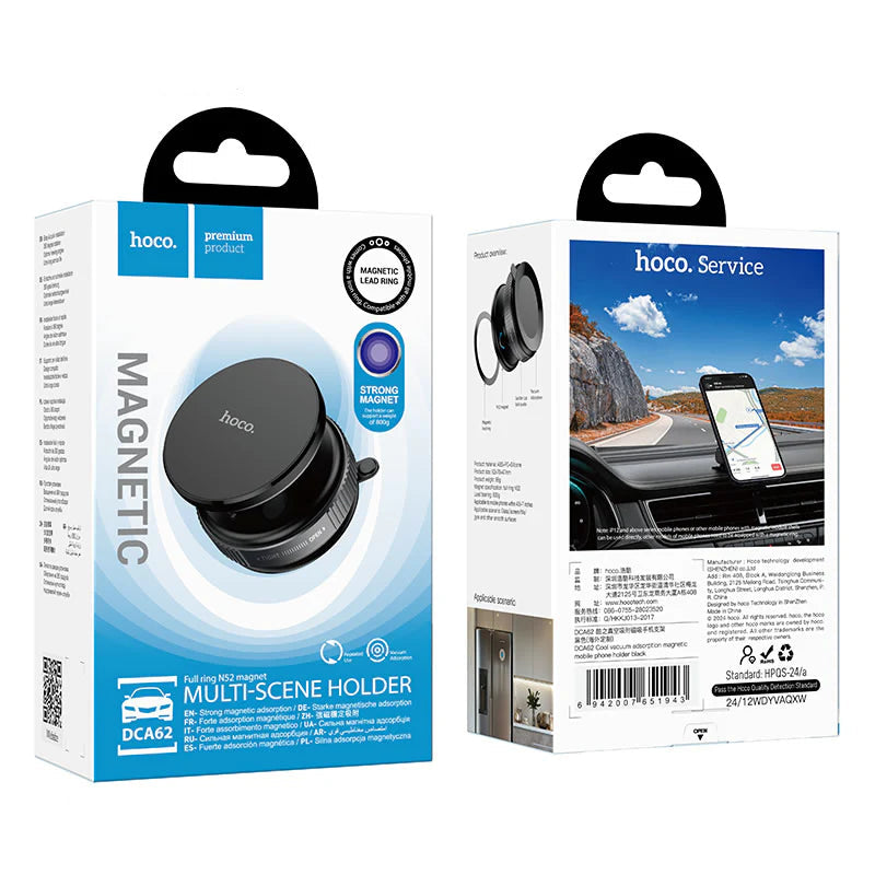 The HOCO DCA62 Multipurpose Phone Holder offers a versatile and secure solution for mounting your phone on both car dashboards and glass surfaces. Equipped with a strong suction mount, it ensures stable positioning even on bumpy roads, providing easy access and hands-free convenience while driving. Its adjustable design accommodates various phone sizes and angles, enhancing visibility and usability without obstructing your view. Crafted with durable materials, this holder combines functionality and reliability, making it an essential accessory for safe and comfortable phone use on the go.
