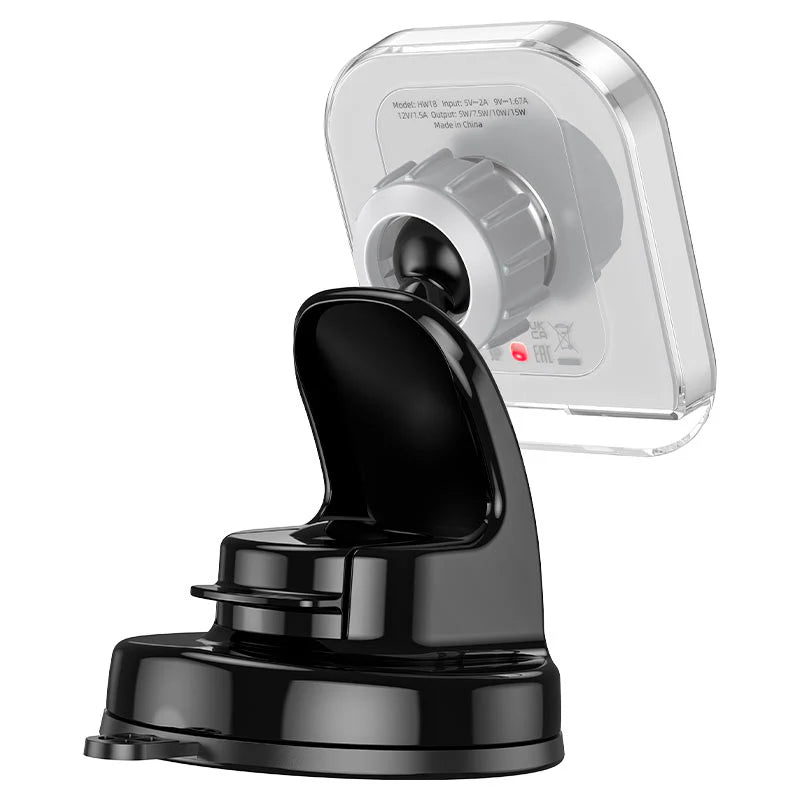 This car holder, the HOCO HW18 Crystal magnetic wireless fast charging car holder in grey, is expertly designed with a combination of ABS, PC, and silicone materials. The surface has undergone a texture and polishing process, resulting in a sleek and durable finish. Measuring at 105*60.5*105mm and weighing 110g, this holder provides fast charging capabilities of up to 5W/7.5W/10W/15W (MagSafe 7.5W; 15W for select LG phones). With compatibility for 4.5-7.0 inch mobile phones, it is perfect for various devices, especially iPhone 12-15 series. Easy to install, this holder is mounted on the car center console.
