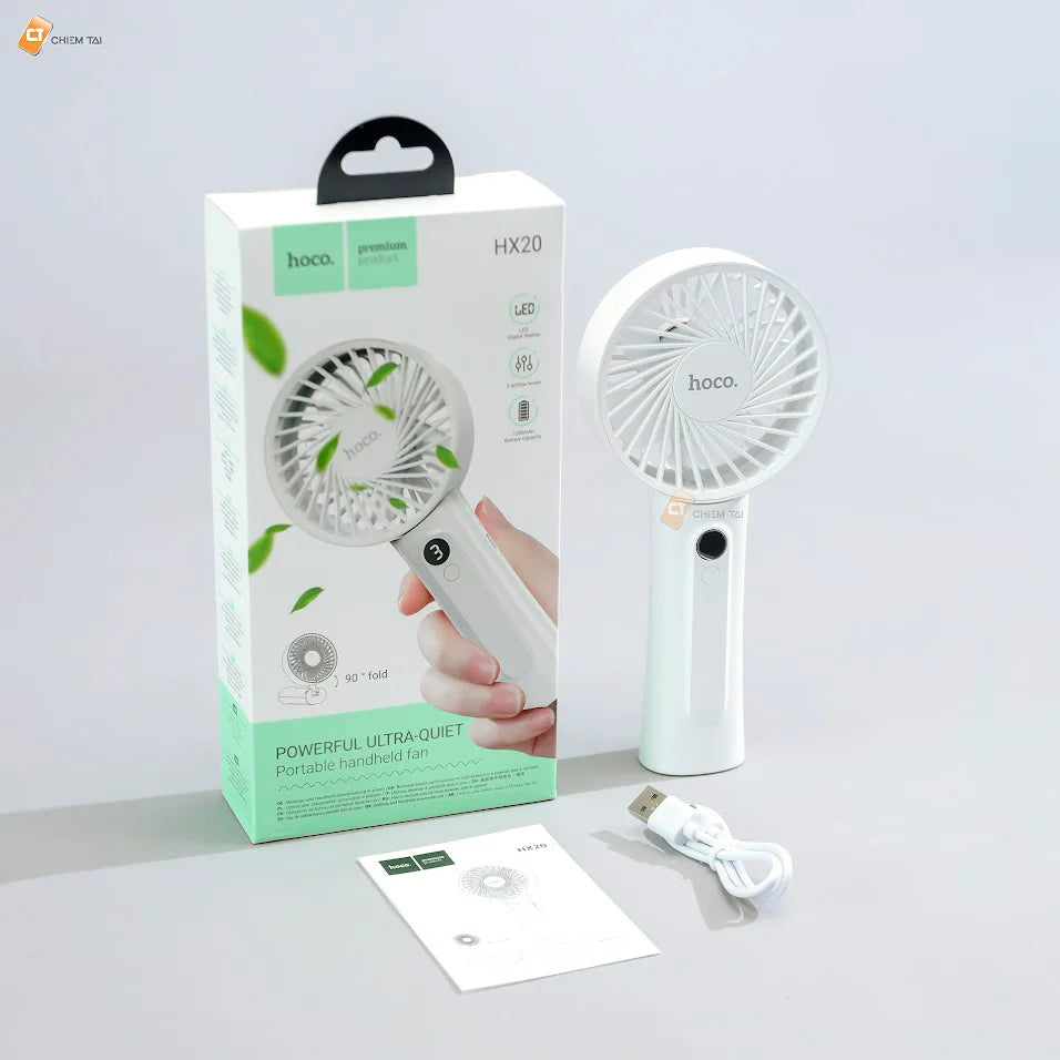 The Hoco HX20 Mini Rechargeable Fan is the perfect summer companion. Featuring 3-speed wind control, a sleek portable design, and a 1200mAh rechargeable battery, this mini rechargeable fan keeps you cool wherever you go. Whether on your desk, in your bag, or held in your hand—comfort and freshness are always within reach.