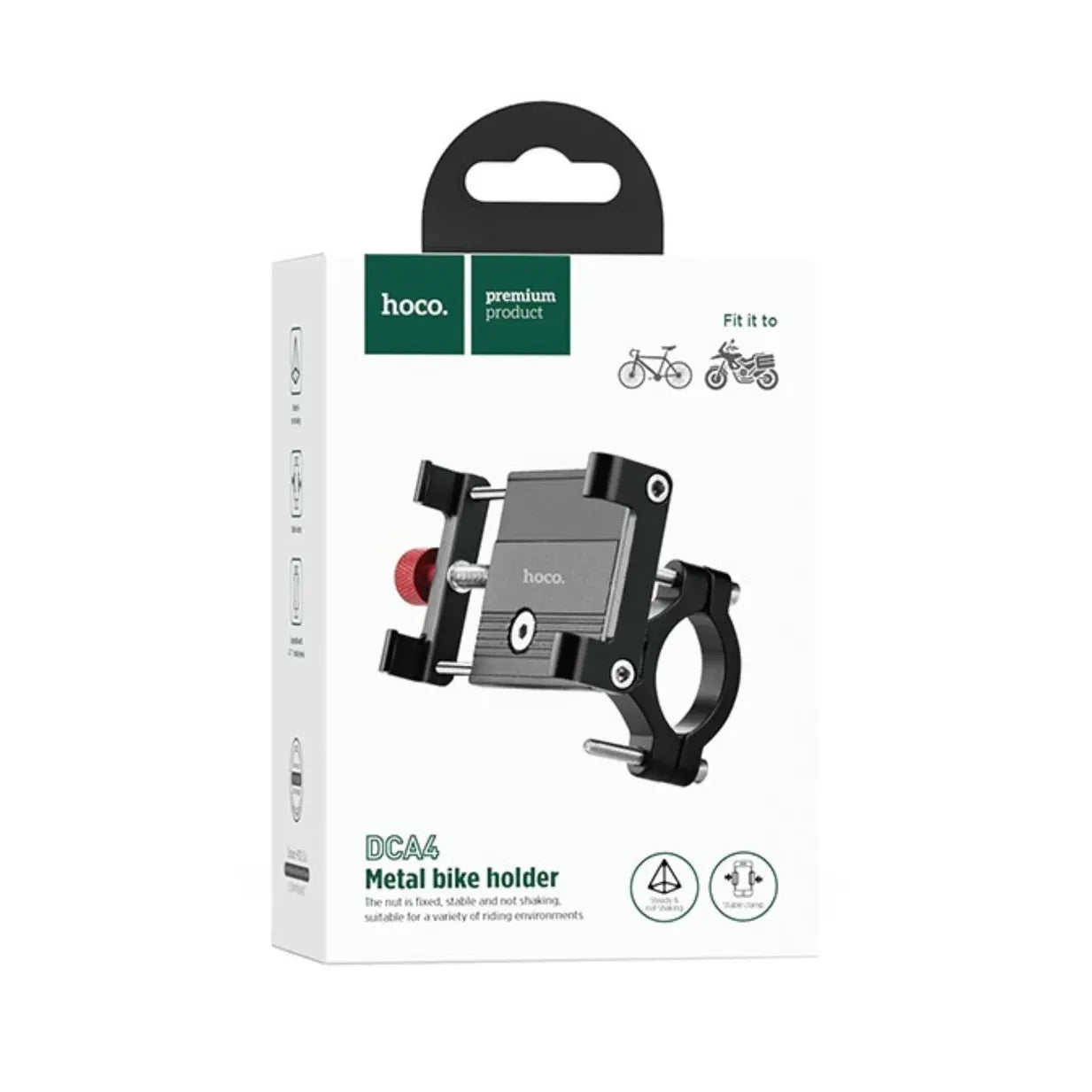 The HOCO DCA4 is a rugged, all-metal phone holder designed for cyclists and motorbike riders who need a secure and reliable mount. Crafted from high-quality aluminum alloy, it delivers durability and a tight grip even on rough terrain. With 360-degree rotation and a universal design, it fits most smartphones and handlebars with ease — making your rides smarter and safer.