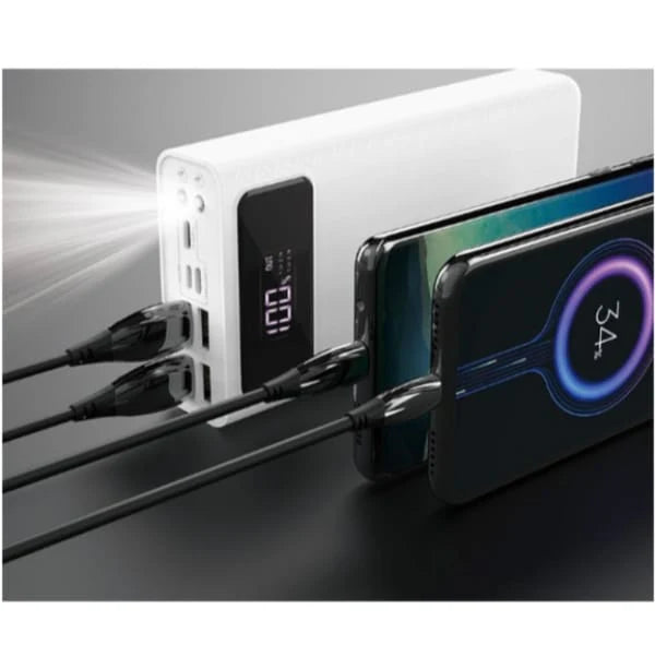 Power up your devices on the go with the Hoco 30000mAh Power Bank. With an impressive battery capacity, this power bank can keep your devices charged for extended periods of time. Perfect for travel, emergencies, or everyday use, the Hoco Power Bank is a reliable and efficient way to ensure you never run out of battery power again. Get ready to go the distance with the Hoco 30000mAh Power Bank. With its massive charging capacity, this power bank provides up to 4 full charges for your smartphone, making it perfect for long trips, outdoor adventures, and everyday use. Stay connected and powered up no matter where life takes you.