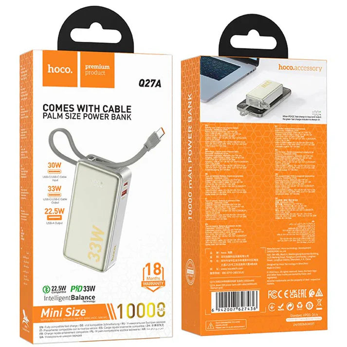 The Hoco Q27A 33W 10000mAh Power Bank offers high-speed charging and impressive power in a sleek, portable design. Equipped with a 10000mAh capacity, this power bank ensures that your devices stay powered up during your busiest days. The 33W fast charging capability makes it perfect for quickly charging smartphones, tablets, and other USB devices. Whether you’re traveling, commuting, or working, this power bank guarantees reliable and efficient charging for all your devices.