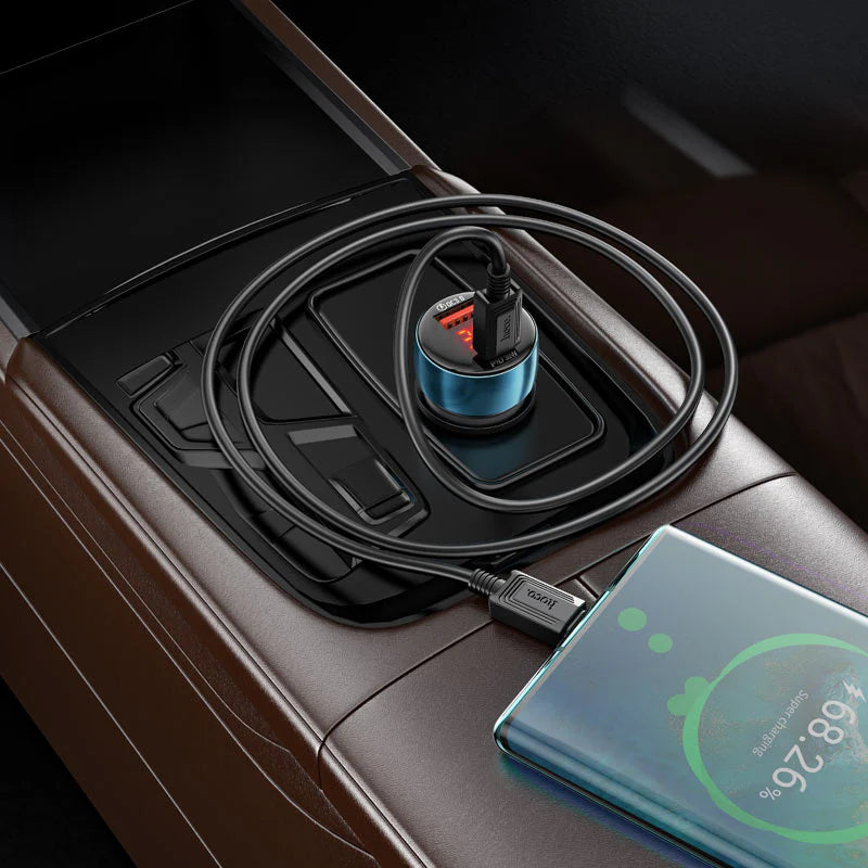 The Hoco Z50 Leader 48W Car charger With Type-C to Type-C Cable Set is the ultimate solution for charging your devices on the go. With its high-wattage capacity, this charger can provide fast and efficient charging for all of your devices. Plus, the included Type-C to Type-C cable ensures that you have everything you need for a seamless charging experience. Don't worry about running out of battery while on the road - the Hoco Z50 has you covered. With a powerful output of 48W, the Hoco Z50 Leader car charger is designed to charge your devices quickly and efficiently. The Type-C to Type-C cable set allows for convenient and easy charging, making it the perfect accessory for your car. With this set, you'll never have to worry about running out of battery on the road again.