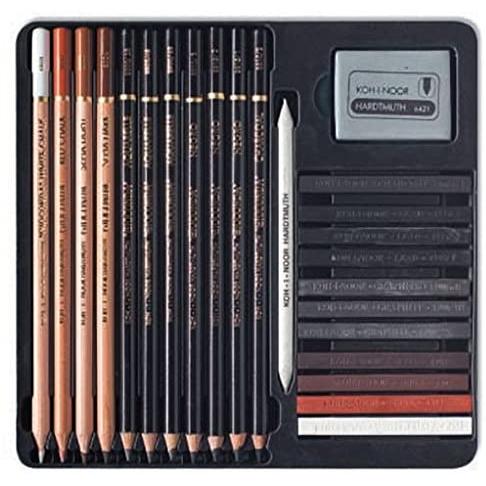 The Koh-I-Noor Gioconda Art Set 24pc offers a thoughtfully curated selection of premium artistic materials, designed to inspire creativity and precision in a variety of techniques.