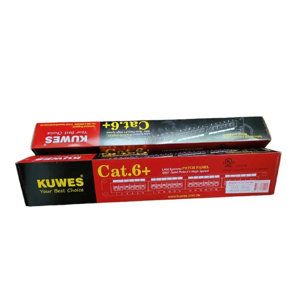 The KUWES 24 Port CAT.6 Patch Panel Loaded delivers professional-grade connectivity infrastructure for demanding network environments. This fully loaded patch panel features 24 CAT.6 ports, providing robust support for high-speed data transmission up to 10 Gbps. Engineered with precision-molded connectors and superior shielding, it minimizes crosstalk and signal degradation across all channels. The panel's compact 1U rack-mount design integrates seamlessly into standard server cabinets, while color-coded ports streamline cable management and network administration. Ideal for data centers, enterprise networks, and large-scale installations requiring reliable, scalable connectivity solutions. Built to industry standards for durability and performance.