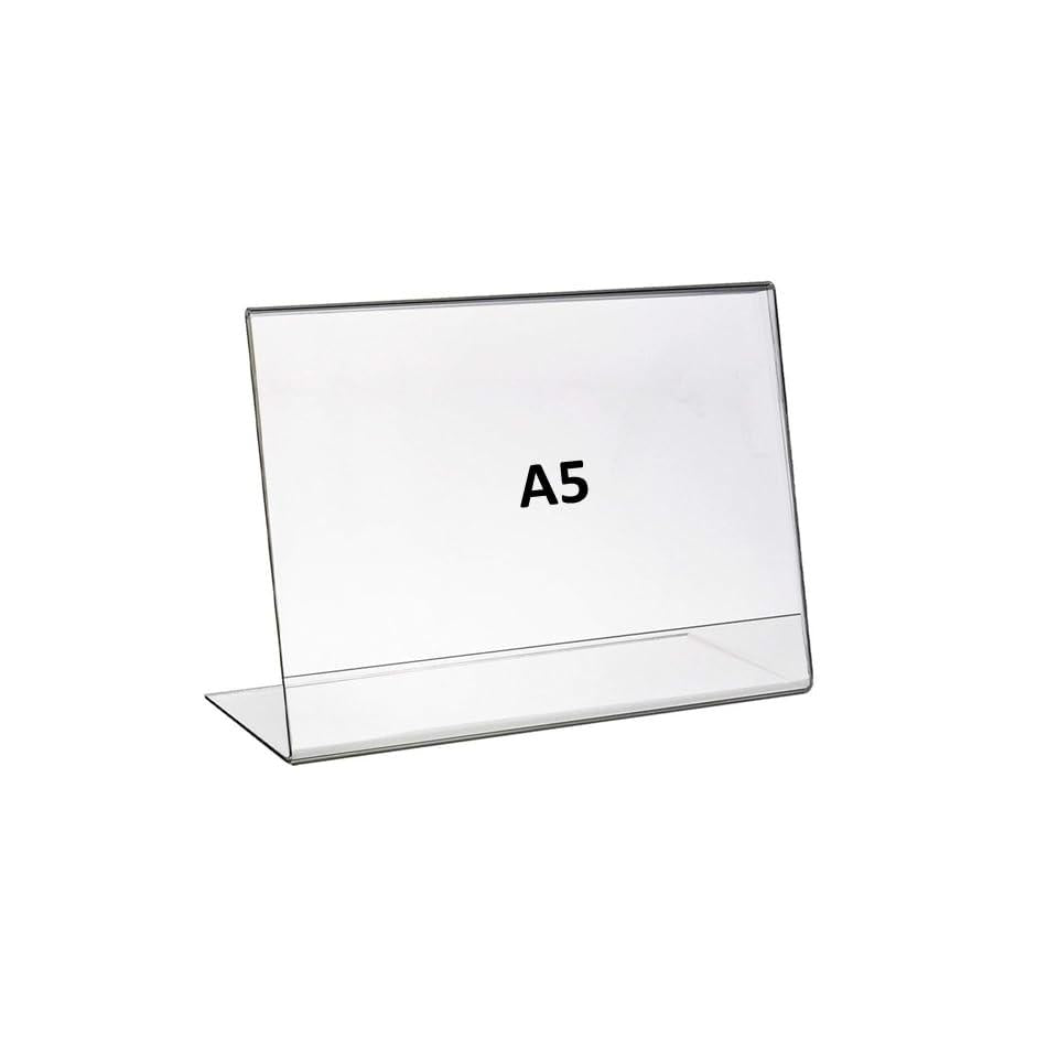 The A5 Acrylic Horizontal Card Stand offers a sleek, professional way to display your cards, brochures, or informational material. Crafted from clear, durable acrylic, it ensures excellent visibility while maintaining sturdiness. Its horizontal design is ideal for showcasing wider cards or materials, making it perfect for retail counters, offices, or exhibitions. Easy to clean and resistant to scratches, this stand combines functionality with an elegant aesthetic, helping your displayed items stand out with clarity and style.