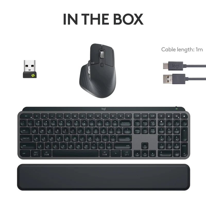 | Additional Features & Functions | Customisable Illumination, Fast Fluid Precision Typing, Connect With Up to 3 Devices, Scroll 1000 Lines Per Second With the Magspeed Scroll Wheel, Automate Repetitive Tasks, Work on Multiple Computers and Cross-OS, Compatible OS: Windows 10, 11 or Later, macOS 10.15 or Later, Linux, ChromeOS, iPadOS 14 or Later, iOS 14 or Later, Android 8.0 or Later, Engineered for Intel Evo Laptops |