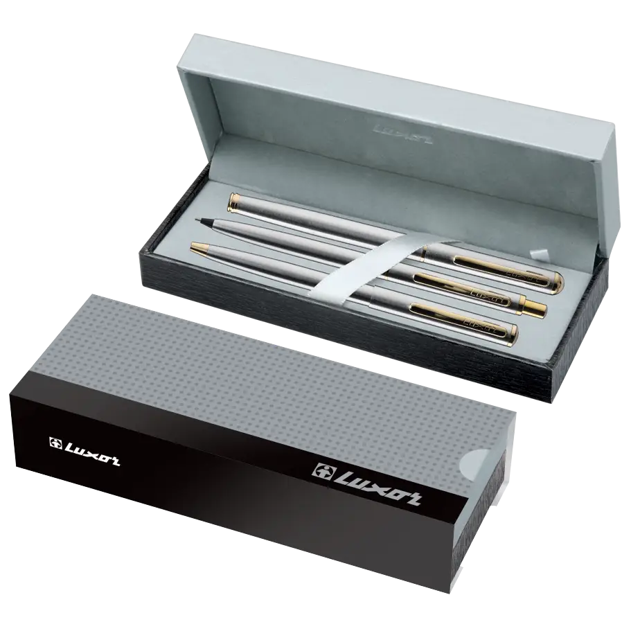 Elevate your writing experience with the Luxor Marvel Pen Set, a sophisticated collection of three premium writing instruments designed for discerning professionals.