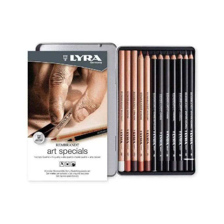 The Lyra Rembr Artspecial Set Tin Box includes 12 premium art tools designed for serious artists and professionals. Each piece in this carefully curated collection offers exceptional quality, vivid pigmentation, and smooth application, ideal for detailed sketches, illustrations, and mixed-media projects. Encased in a durable tin box, this set is perfect for both studio use and on-the-go creativity, ensuring your tools are well protected and easily accessible. Experience enhanced artistic expression and precision with every stroke using this versatile and reliable art set.