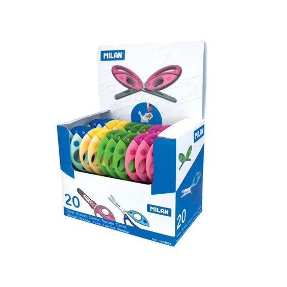 The Milan School Scissor Butterfly 1479820 is specially designed for young users, combining safety with efficient cutting performance. Its ergonomic butterfly-shaped handles provide a comfortable grip that promotes correct hand positioning, reducing strain during use.