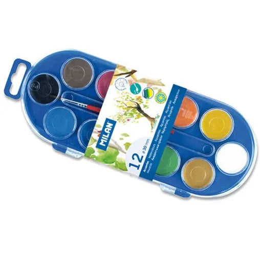 Discover the Milan Set of 12 Watercolour Tablets, each measuring 30mm, designed to deliver vibrant, blendable colors for artists of all levels.