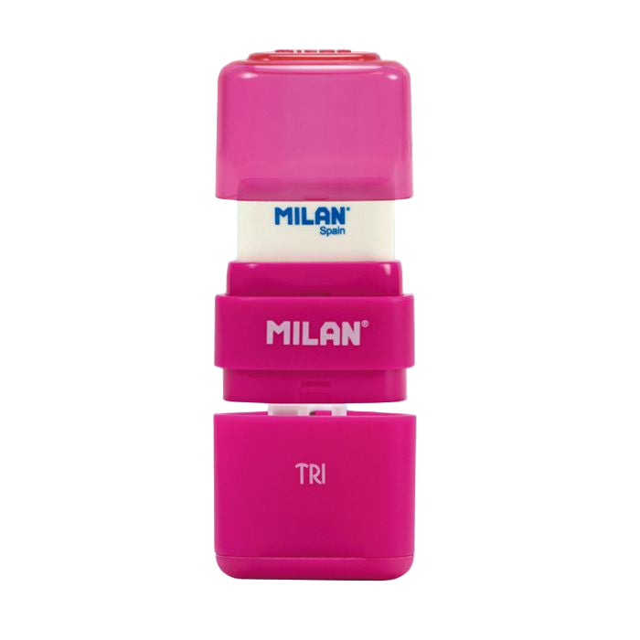 The Milan Sharpener TRI with Erasers 4700116 combines efficiency and convenience in one compact design. Its triangular shape offers an ergonomic grip, allowing for comfortable and precise sharpening of pencils, ideal for both detailed drawing and everyday writing tasks.