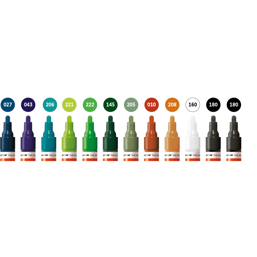 The Molotow One4All Acrylic Marker 4mm Main Kit includes 24 high-quality acrylic markers designed for precision and versatility. Featuring vibrant, fade-resistant pigments, these markers deliver smooth, consistent coverage on a wide range of surfaces including canvas, wood, metal, and glass. The 4mm tip ensures precise line work while allowing for bold strokes, ideal for artists, designers, and craftsmen seeking professional-grade results. Refillable and equipped with replaceable tips, this kit offers long-lasting usability and excellent control. Perfect for detailed work, layering, and mixed media projects, the Molotow One4All kit is an essential tool for advanced creative applications.