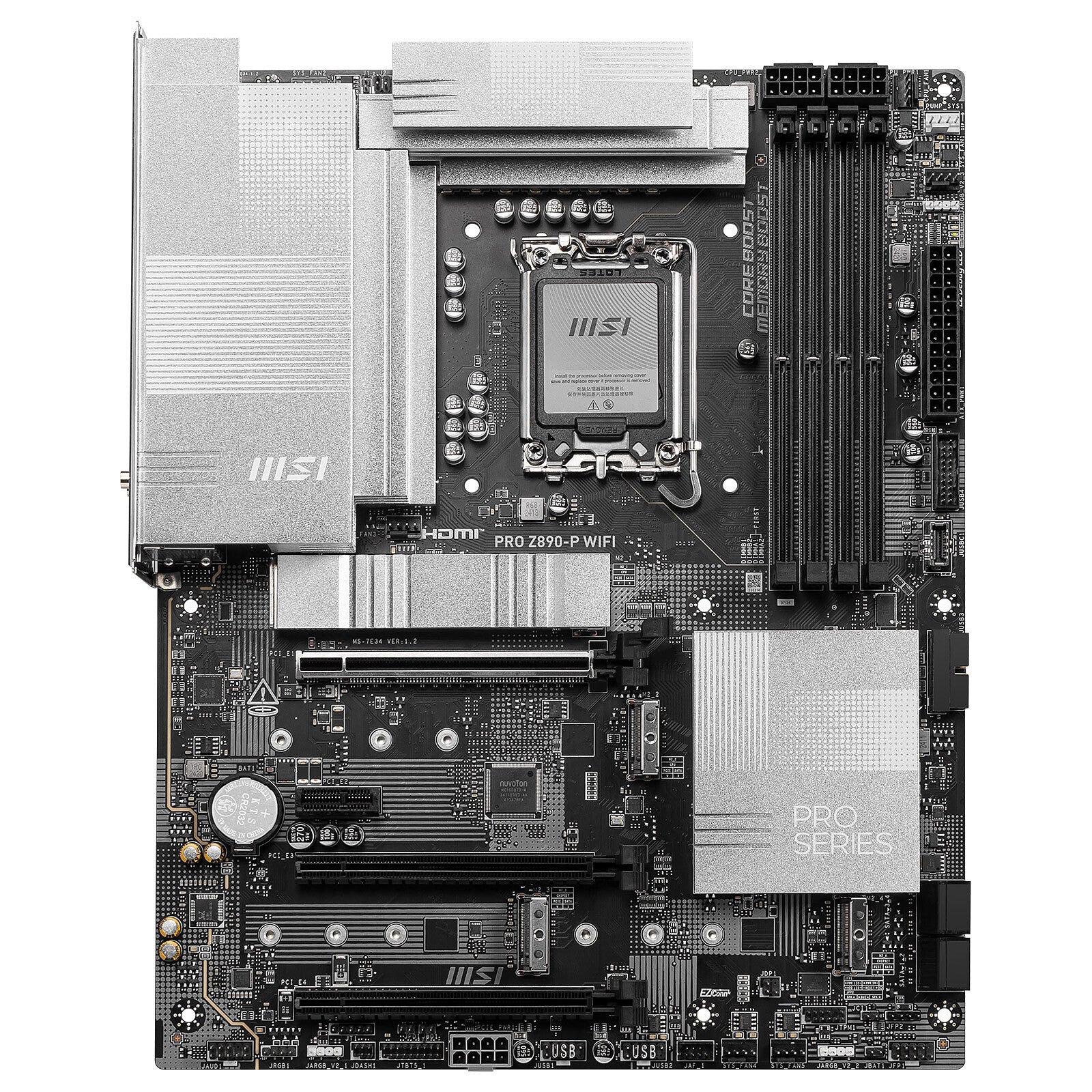 Performance: The PRO Z890-P WIFI supports Intel Core Ultra processors for the LGA 1851 socket, along with dual-channel DDR5 memory up to 9200+ MT/s (OC). It boasts a 14+1+1+1 Duet Rail Power System with 55A DrMOS and dual 8-pin CPU power connectors, enhancing the overall system performance and stability. The motherboard also includes features like Core Boost and Memory Boost to optimize CPU and memory performance.