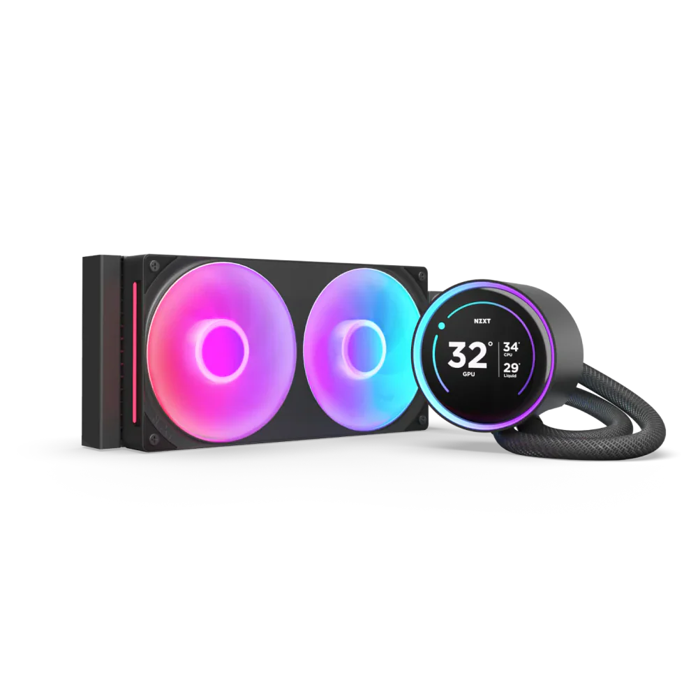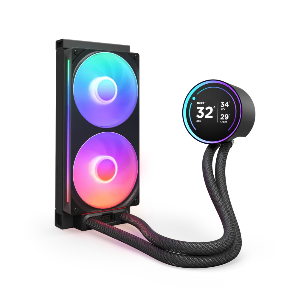 | Special Features | 2.36” diameter wide-angle LCD display with 640x640 resolution and 60 Hz refresh rate provides a sharp image from any viewing angle Screen supports the display of custom images, animated GIFs, and CAM system info with adjustable orientation Powerful Asetek pump provides optimal cooling and up to 2,800 RPM whisper-quiet operation Includes F140/F120 RGB Core fans Includes RGB Controller, RGB Fans, & USB Y-Cable Single breakout cable simplifies installation Rubber tubing is reinforced with nylon-braided sleeves to prevent leaks Control custom screen content, RGB, pump speed, and zero-noise fan curves with NZXT CAM software. |