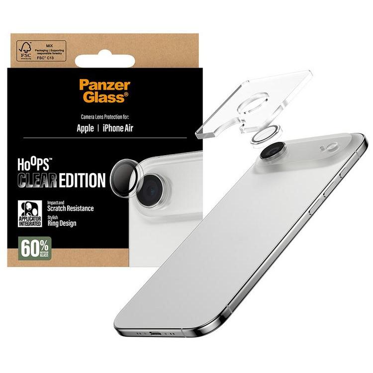 Keep your iPhone camera safe from scratches and bumps with the PanzerGlass Hoops Transparent Camera Protector. Made from tempered glass and silicone, this clear protector offers maximum protection without affecting camera optics or image quality. Rounded edges and a smudge-resistant coating ensure easy handling and a clean look. Full-surface adhesive allows for easy, bubble-free application with no residue left behind.
