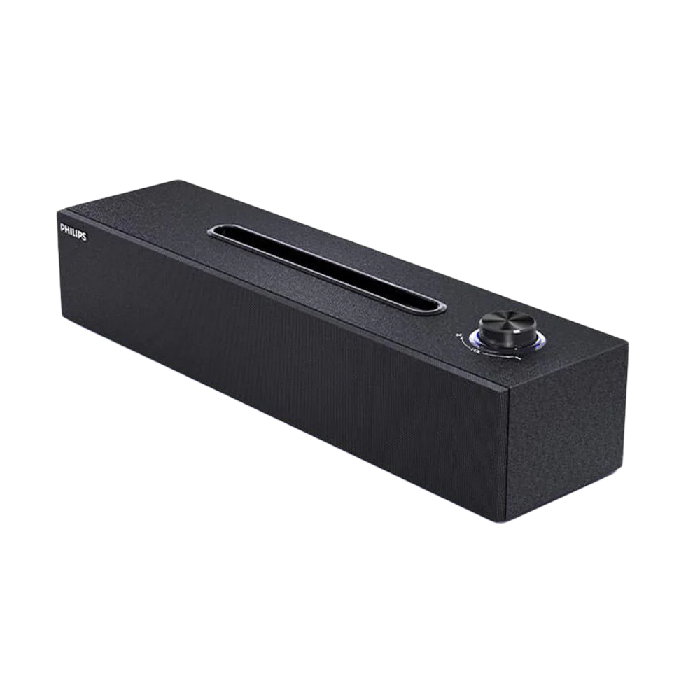The Philips SPA3808 wooden computer speakers utilize a wooden enclosure to enhance sound quality and minimize resonance. Featuring Bluetooth 5.1 connectivity, and a built-in sound card for optimized audio performance, these 2.0 channel speakers deliver clear and immersive sound thanks to precise professional tuning. Their sleek and modern design is complemented by a built-in stand for convenient mobile phone or tablet placement, making them versatile for various uses.