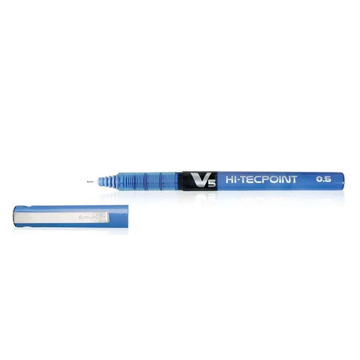 Pilot V5 Hitech Point Roller Pen (Blue): Experience exceptional writing with the Pilot V5, featuring 0.5mm extra fine tip, Japanese 3-dimple technology, and ATT system for smooth starts. Pure liquid ink and a see-through tank ensure skip-free writing and easy ink monitoring. Writes 4 times longer than gel pens.
