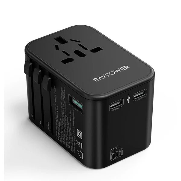 The Ravpower RP-PC1034 PD Pioneer 65W 3-Port Travel Charger in black is engineered for efficient charging on the go. Featuring three ports—including USB-C Power Delivery—it delivers a combined 65W output, allowing simultaneous fast charging for multiple devices such as laptops, smartphones, and tablets. Its compact design is ideal for travel, fitting easily into bags without adding bulk.